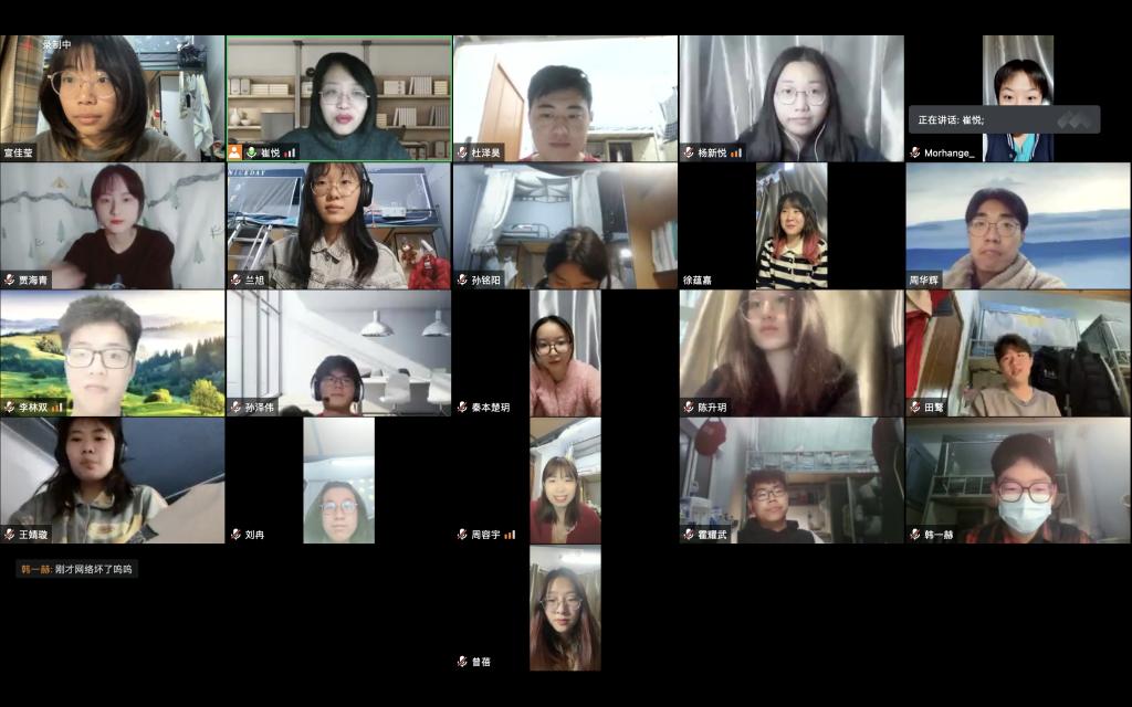 本科生班主任崔悦老师、颜震老师于近期分别组织学生召开“共抗疫情”线上主题班会,两个班级全体本科生参会。