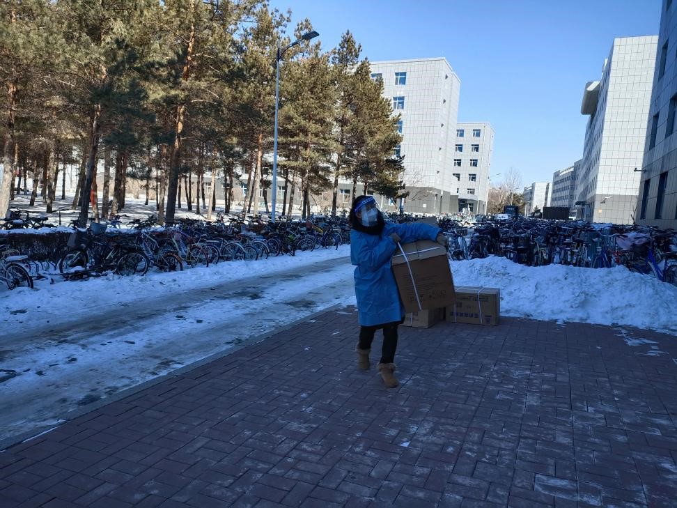樊鸿刚老师负责管理北苑四公寓西区约2500名研究生。每日负责组织三餐和饮用水发放,防疫物资和生活物资的接收和发放,给同学们送药,组织各香蕉视频