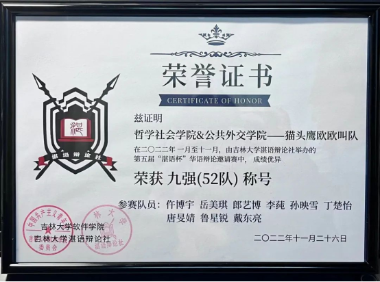 组成的“猫头鹰欧欧叫队”取得了九强(52队)的成绩,由SIPA辩论队和计算机科学技术香蕉视频