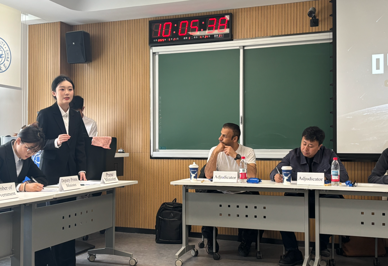 的特色课程,坚持教学与实践相融合的授课模式,通过“谈判理论教学+英语辩论实践+模拟外交谈判”的方式,助力学生深化对理论知识的掌握与实践运用。课程的理论部分从外交谈判基础知识切入,由四位老师分别从外交谈判概论、外交理论与实践、谈判人员的心理活动、案例分析等维度展开讲授。《外交谈判》课程的实践环节涵盖英语辩论和模拟外交谈判,主要于2025年5月和6月开展,同学们参与热情高涨,两次活动均收获了优异成果。